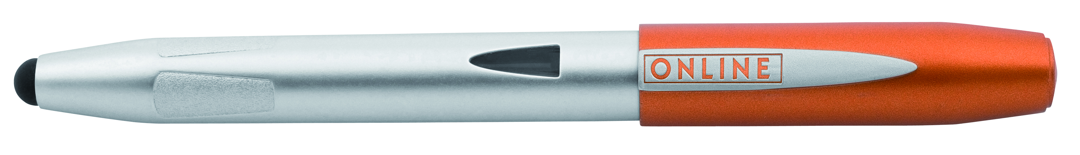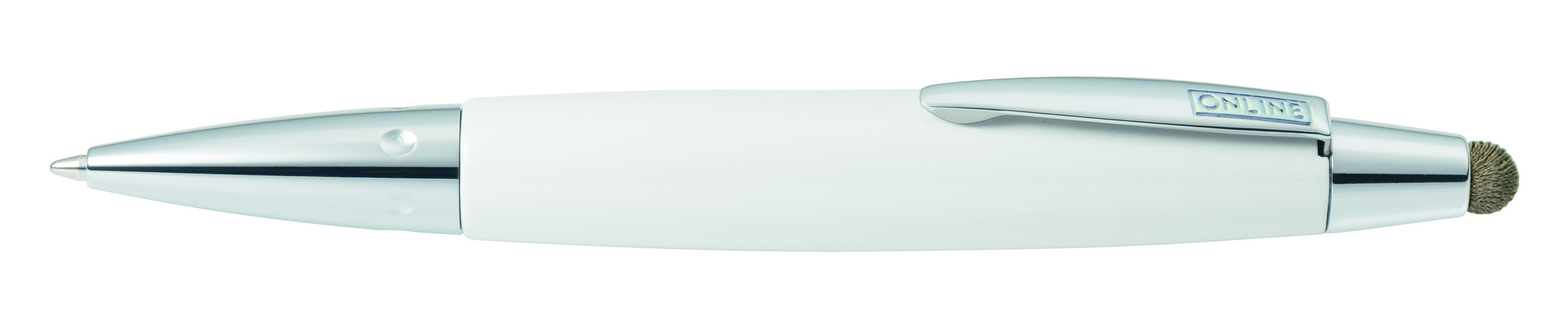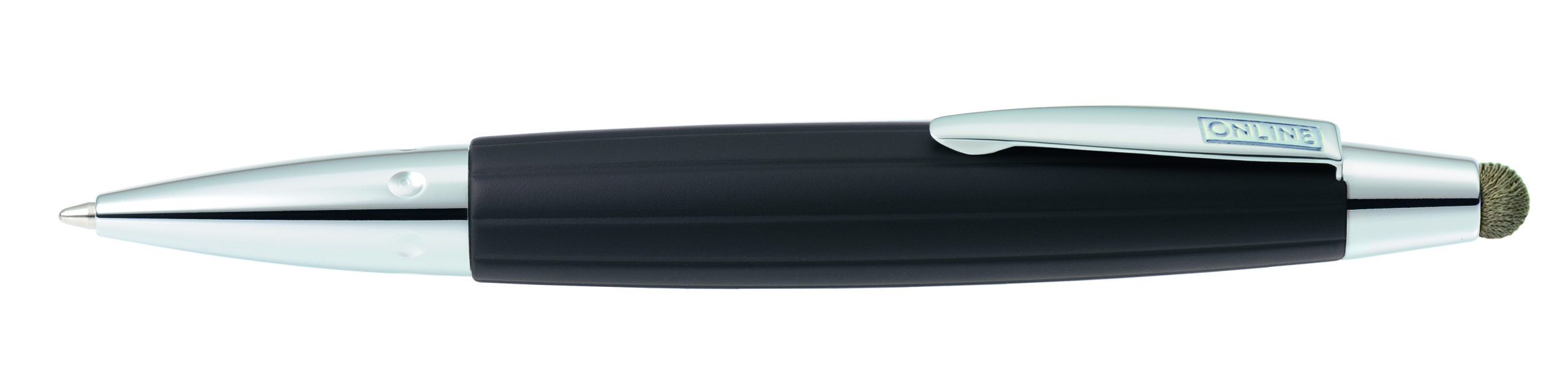「ビジネススタイラスボールペン」はステンレスの本体に、樹脂製のグリップを採用。丸みを帯びたデザインがしっかりと手にフィットする。