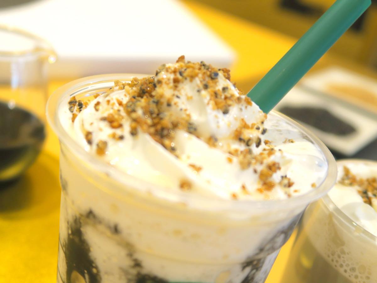 最初の一口から飲み終わる最後の一口まで、濃厚なゴマ風味が楽しめるフラペチーノです。
