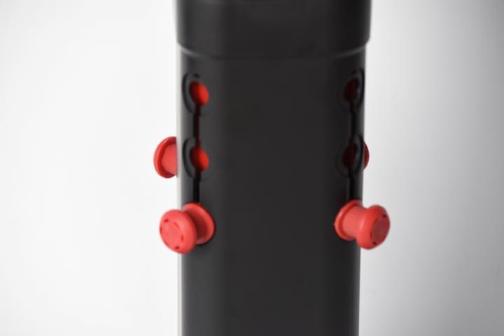 本体のセットは簡単で、台座を回転することで高さ調節ができ、ゴムの位置を変えることで負荷の度合いを変更することが可能です。