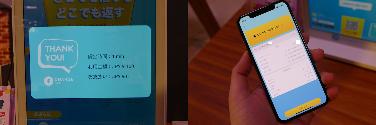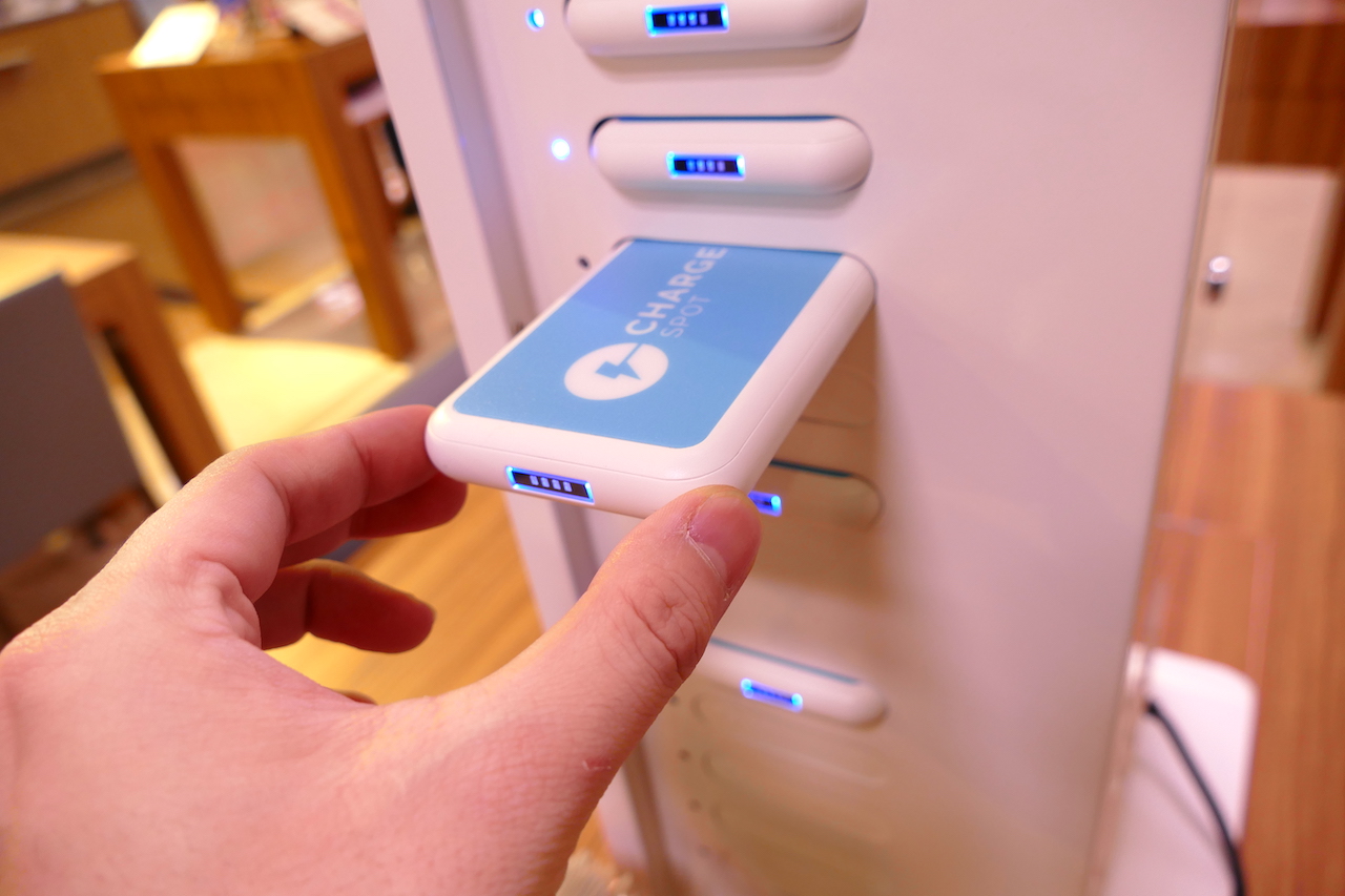 買い物中に移動しながらスマホを充電できるという意味で、従来の設置型の充電器よりも使い勝手が良さそうです。また、モバイルバッテリーは、必ずしも同じスタンドに返さなくてもOK。A店で借りたものをB店のスタンドに返却することもできます(ちなみに、あまり利用することはないと思いますが、東京で借りて海外のスタンドに返却することも可能とのこと)。