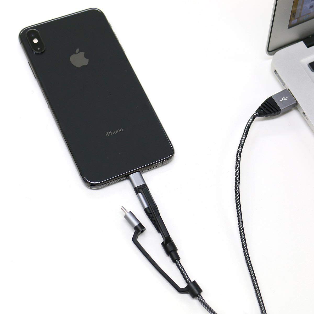 フランス生まれのケースブランドMuvit (ムービット)より登場した「ULTRA STRONG TIGER CABLE 3in1」は、マイクロUSBのケーブルに、キャップ型のライトニングとUSB Type-Cが付属した3in1マルチ充電ケーブルです。キャップ型コネクタのふたつはケーブルにつながっているので失くす心配はありません。