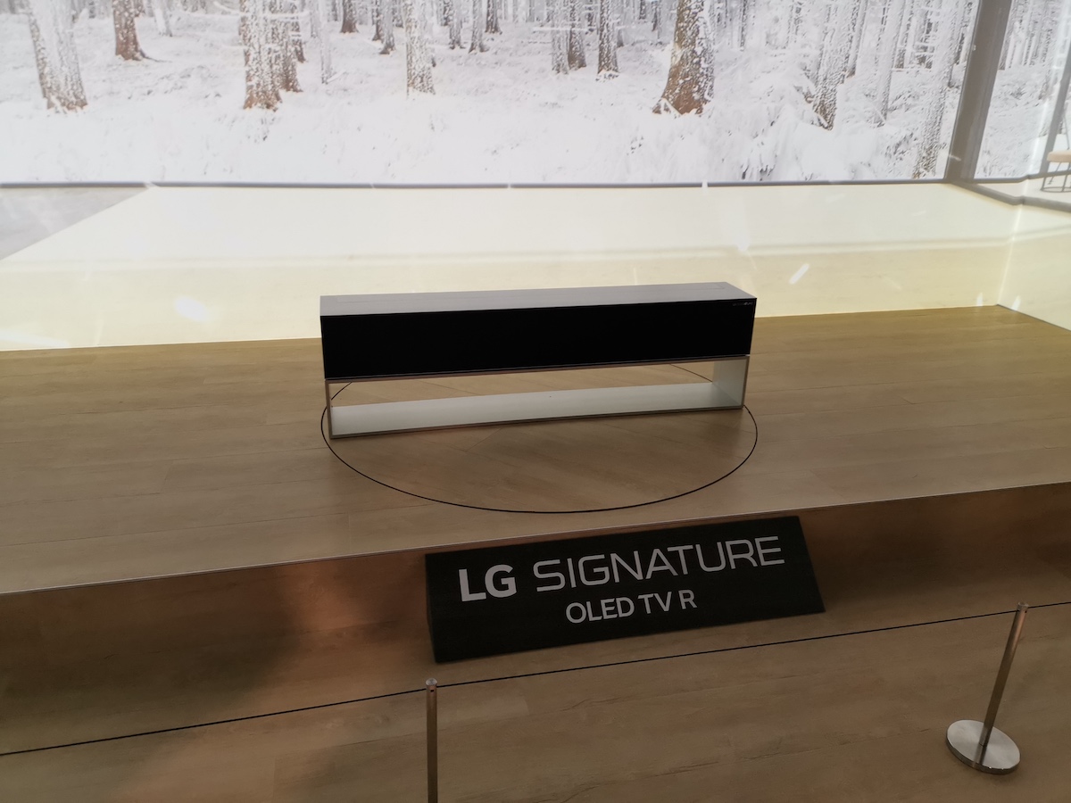65インチの有機ELディスプレイを搭載する、このテレビは「LG SIGNATURE OLED TV R」という製品名で、2019年内に発売予定です。開発中のコンセプトモデルとしてではなく、店頭に並ぶ商用モデルとして発表されました。