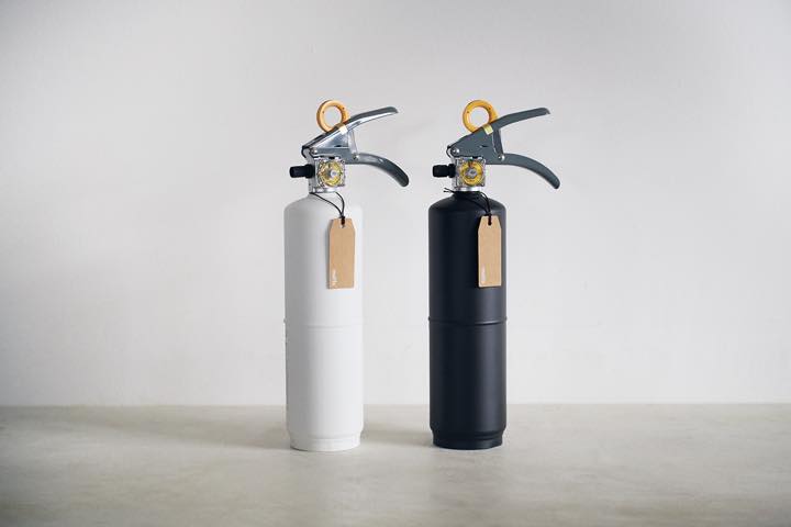 それではいざというときに使えません。そこで生まれたのが「+ 住宅用消火器」(1万円/税別)。部屋の片隅に置いておいても景観を損なわない、かつてないスタイリッシュなデザインの消火器です。