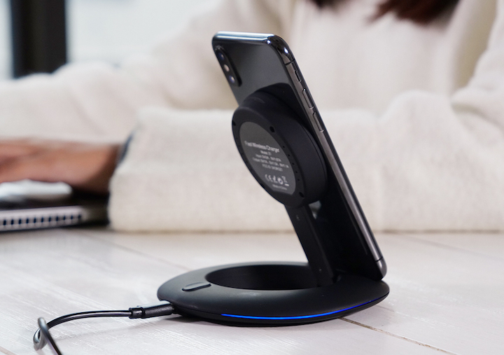 ケーブルの抜き差しが必要なく、かんたんに充電できるワイヤレス充電器。仕事中や休憩しながら、ぽんと置くだけで待ち受けしながらのんびりチャージできるのはやっぱり便利です。