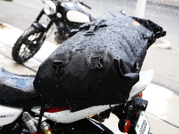 ロングツーリングでは雨に遭うこともしばしば。そのたびにレインカバーをかけようとあたふたするのは、面倒なだけじゃなく危険も伴う。だったら最初から、専用の防水バッグにしてしまってはどう?