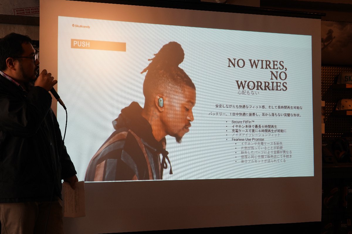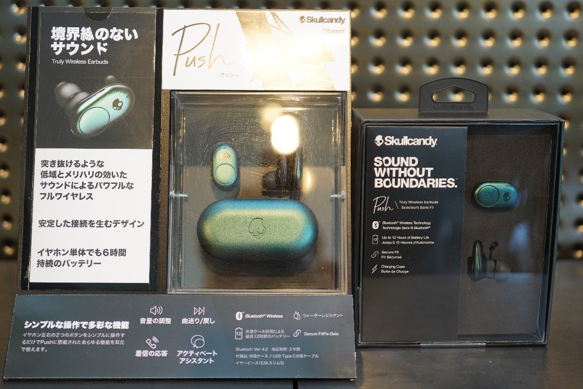 「PUSH」は機能面とデザイン面の両方で“境界線のないサウンド”がキャッチフレーズ。同時に、SkullCandyらしい低音にパワーのあるサウンドとして“パワフルなフルワイヤレス”のサブキャッチも用いられています。