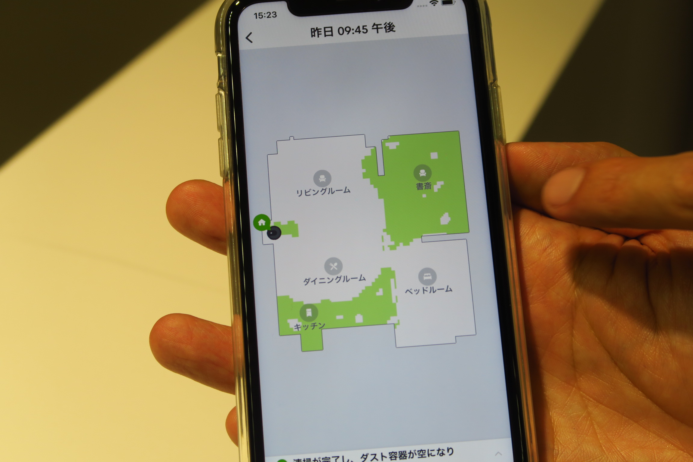 これまでのルンバは目の前のゴミだけを見ていたので、複数の部屋にまたがって「全体をきれいにする」という掃除の仕方をしていましたが、「寝室だけ」「リビングとダイニングの2部屋まとめて」といった部屋単位での掃除が可能になります。