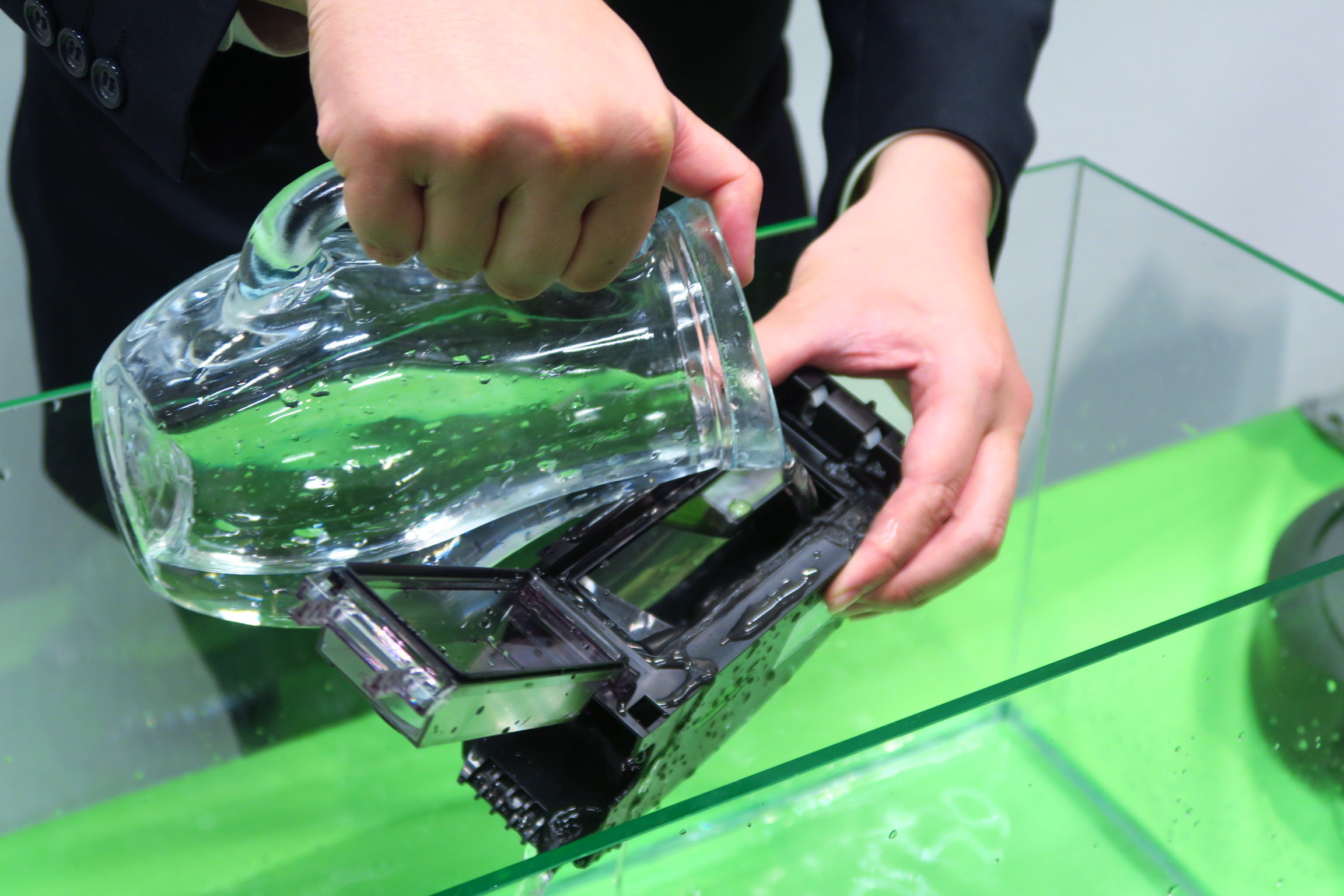 ▲クリーンベースから出すときは写真のように引っ張るので、穴からゴミが漏れない