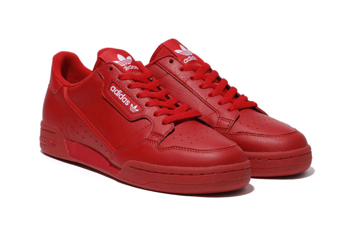1980年代初期のトラディショナルな仕様を受け継いだアディダスの人気シューズ「CONTINENTAL 80」が持つヴィンテージなルックスを、atomos流の解釈で再定義。柔らかなレッドレザーのアッパーの上に、サイドのウェビングも同色のレッドで表現し、さらにパーツ各部のカラーもレッドで統一することで、唯一のホワイトカラーであるadidas Originalsのトレフォイルロゴを際立たせています。