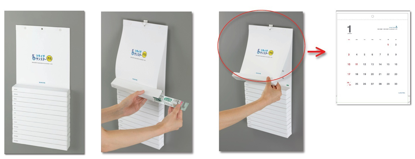 そこで、月に一度新品に交換することで、磨き残しや歯茎に傷をつけるのを防止しようという画期的なカレンダーなのだ。