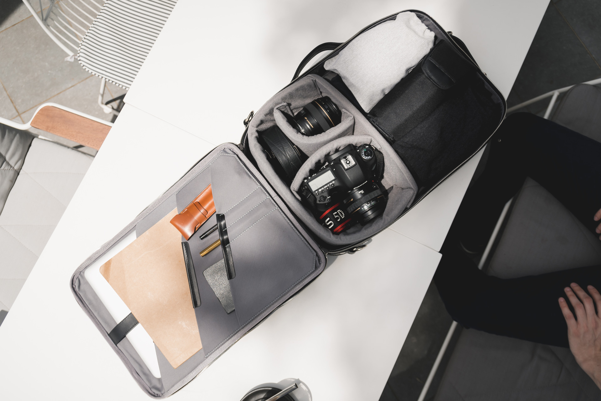持ち運ぶモノのサイズに合わせて仕切り場所を変えられるのも便利。こんなにスタイリッシュなカメラバッグって、今までなかったかも。