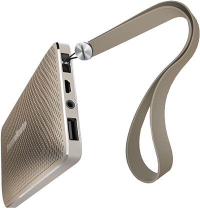 持ち運びに便利なレザーストラップも付属する、シンプルでスタイリッシュなスクエアデザイン。カラーと相まって他にはないエレガントさ! 女性がこんなスピーカーを持っていたら、男子的にはヤラレタ!となりそうだ。