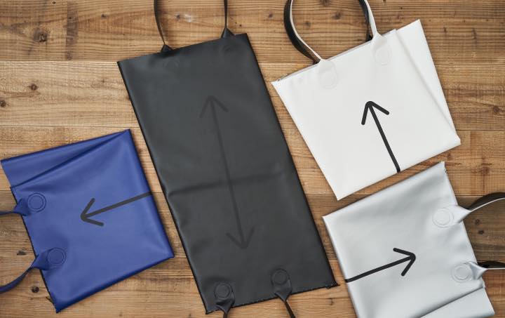 仕事はもちろん、買い物やレジャーなど、幅広く活用できるトートバッグ。キャンバス生地のものが主流ですが、今回ご紹介するのは、かなり異色な素材。しかも、シンプルなデザインに秘められた大胆な新発想。