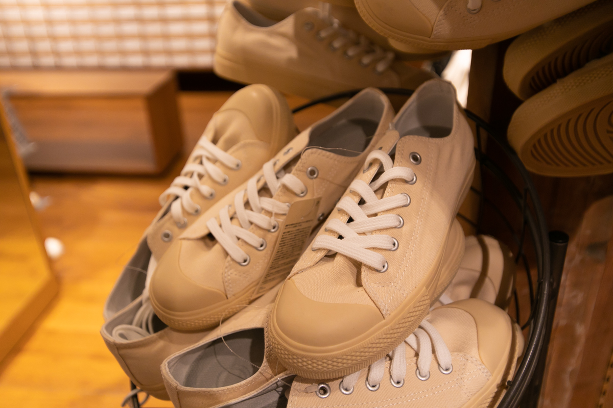 無印良品のスニーカーといえば、「撥水オーガニックコットン疲れにくいスニーカー」のような“疲れにくい”シリーズが人気。銀座店では、「疲れにくい撥水スニーカー」の限定色が買えるんです。