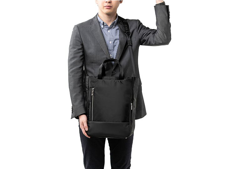 こうした時代背景に着目して開発された肩掛けスタイルのビジネストートバッグが、5月上旬に「ace.(エース)」から発売されます。前持ちスタイルになってもスマートなトートバッグ。ビジネスマン必見ですよ。