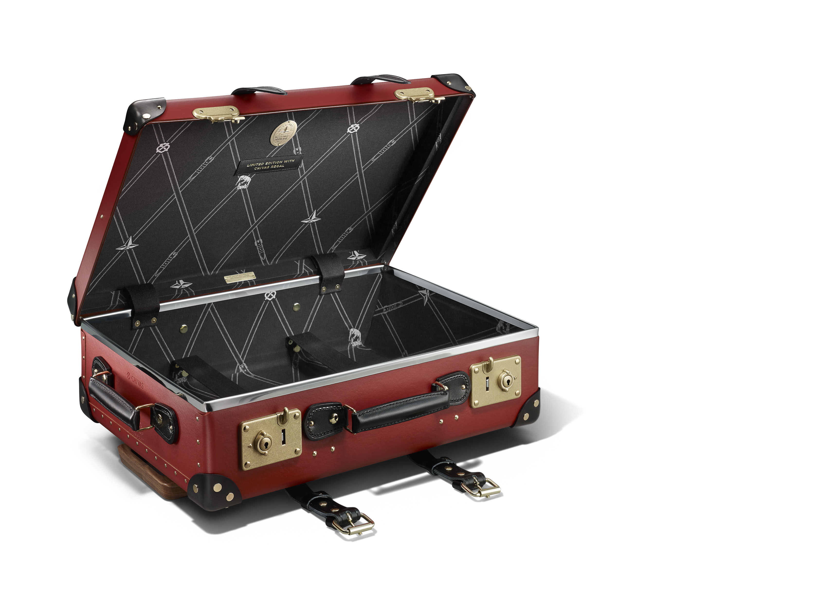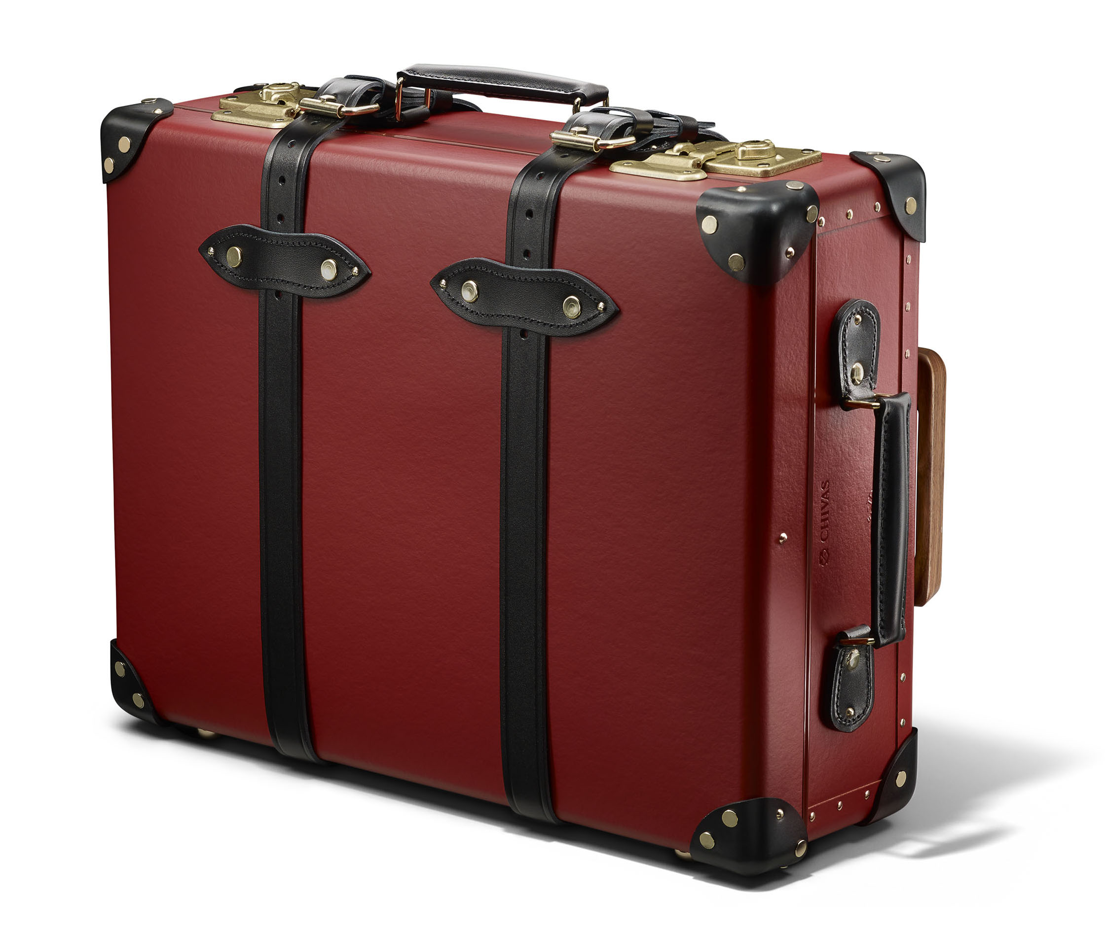 このたびのキャンペーンでは、小旅行や出張などに最適な20インチサイズの限定コラボデザインのトロリーケースをプレゼント。「シーバスリーガル12年」のキーカラーである“バーガンディー”のボディにブラックレザーをあしらい、内側には「シーバスリーガル」を象徴するラッケンブースのマークをデザインしたライニングを施した、ラグジュアリーなケースだ。