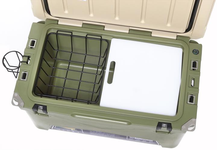 「アイスランドクーラー」は、厚さ5cmの断熱層と密閉性の高いゴムパッキンのフタが冷気を逃さず、氷を最大5日間も保持する超高性能クーラーボックス。内部には仕切りとしても使えるまな板やワイヤーバスケットが付属しています。そのスペックや使いやすさはもちろん、シンプルでクールなデザインがキャンパーを中心に高い人気を博しています。