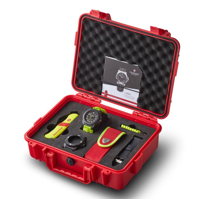 4月26日より数量限定で予約発売を開始している「I.N.O.X. カーボン リミテッドエディション」は、消防士の世界にインスピレーションを受けたというイエローとレッドのカラーリングが特徴的な腕時計とレスキューツールのセットコレクション。