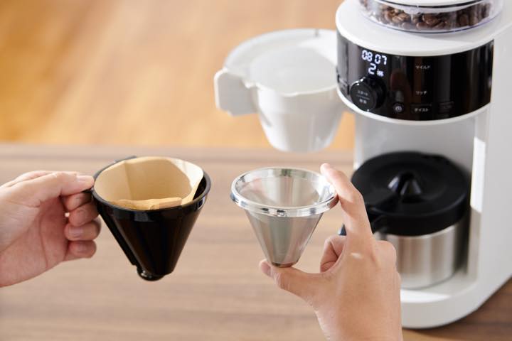 フィルターはステンレスフィルターと紙フィルターどちらも使用可能。豆からだけでなく、粉からも自動抽出できるなど自由度が高いのも特徴で、より自分好みのコーヒーを気軽に味わえそうです。