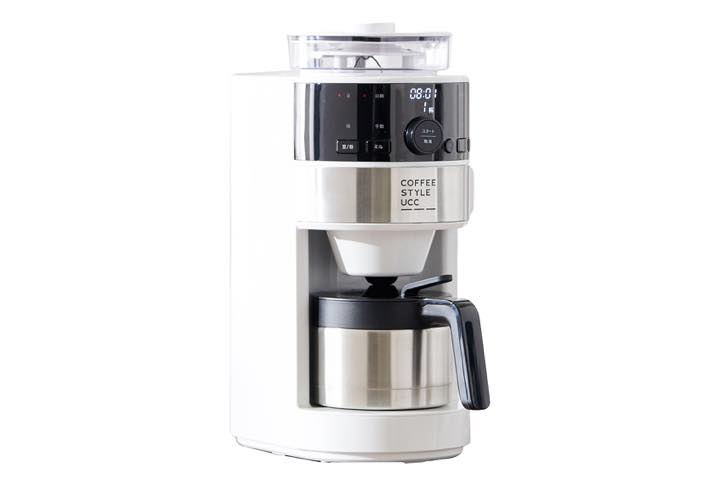 UCC上島珈琲がシロカと共同で開発した「コーン式全自動コーヒーメーカー(UCC特別仕様)」は豆から本格的なコーヒーを楽しめるコーヒーメーカー。ボタンひとつで豆の計量、粉砕、抽出まで自動でこなしてくれます。