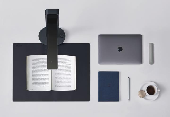 CZUR Teckが開発から製造まで手掛ける非破壊型オーバーヘッドスキャナー「Aura」(価格未定)。最大の特徴は、デスクライトとしても使用できる点です。ナチュラルライトモード、読書推奨モード、コンピューター推奨モード、夜間推奨モードの4種類の照明モードを選択可能で、専用アプリをダウンロードすればスマホから遠隔操作もできます(最大5mまで)。
