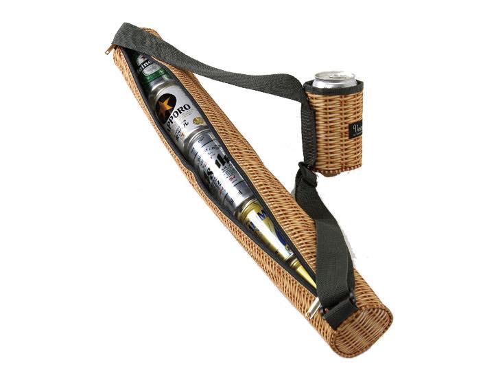 天然素材のカゴのように見えるクーラーバッグシリーズ「パニエ」のNEWアイテムとして、缶やボトルを棒状にして持ち歩ける「ショルダードリンク バッグ」(2000円/税別)が登場しました。
