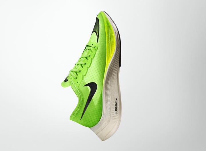 また、ソールに適度な硬さを与えてランナーに推進力を感じさせるカーボンファイバープレートも引き続き搭載。フォームの増量にも関わらず、シューズそのものの重量は「ズーム ヴェイパーフライ 4%」と変わらないという軽さも驚きです。