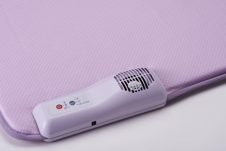「快眠マットSOYO」は、寝心地にこだわったダブルメッシュ&3Dエアファイバーを採用。マット右側にある吸気部から空気を採り入れ、小型ファンによって風の流れを作り、熱や汗による湿気をマットから排出するので、寝具内の環境は常にさらさら。