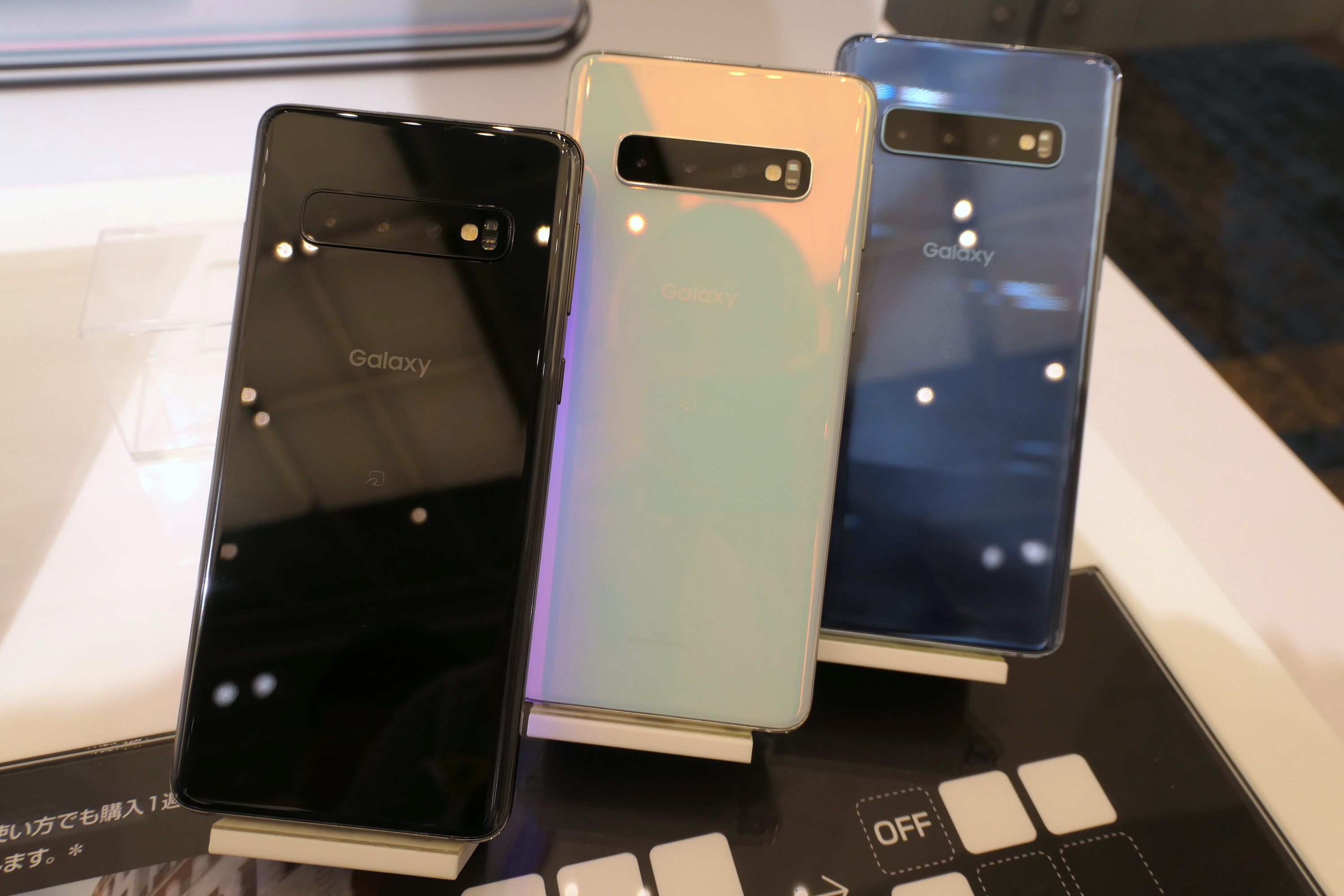 ▲Galaxy S10のカラバリはプリズム ブラック、プリズム ホワイト、プリズム ブルーの3色。5月23日発売予定