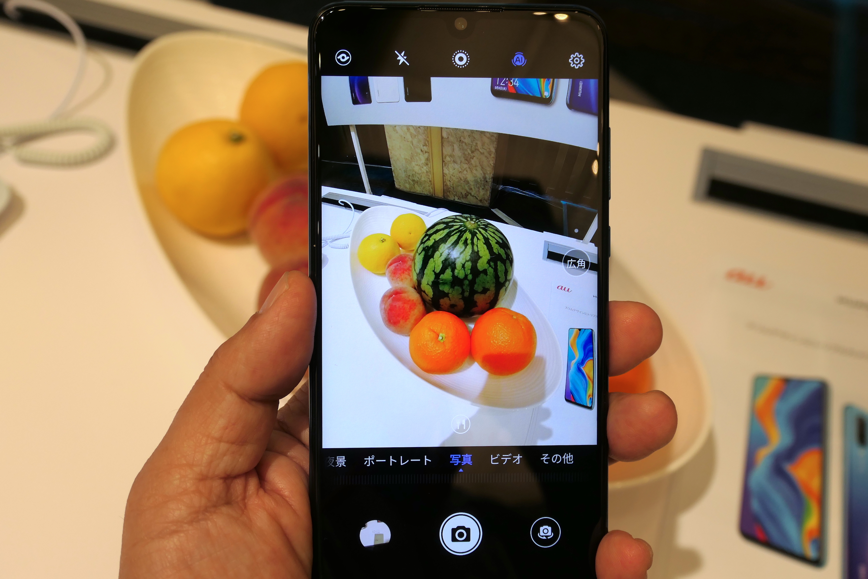 ▲デュアルカメラは広角と標準をワンタッチで切り替えられる