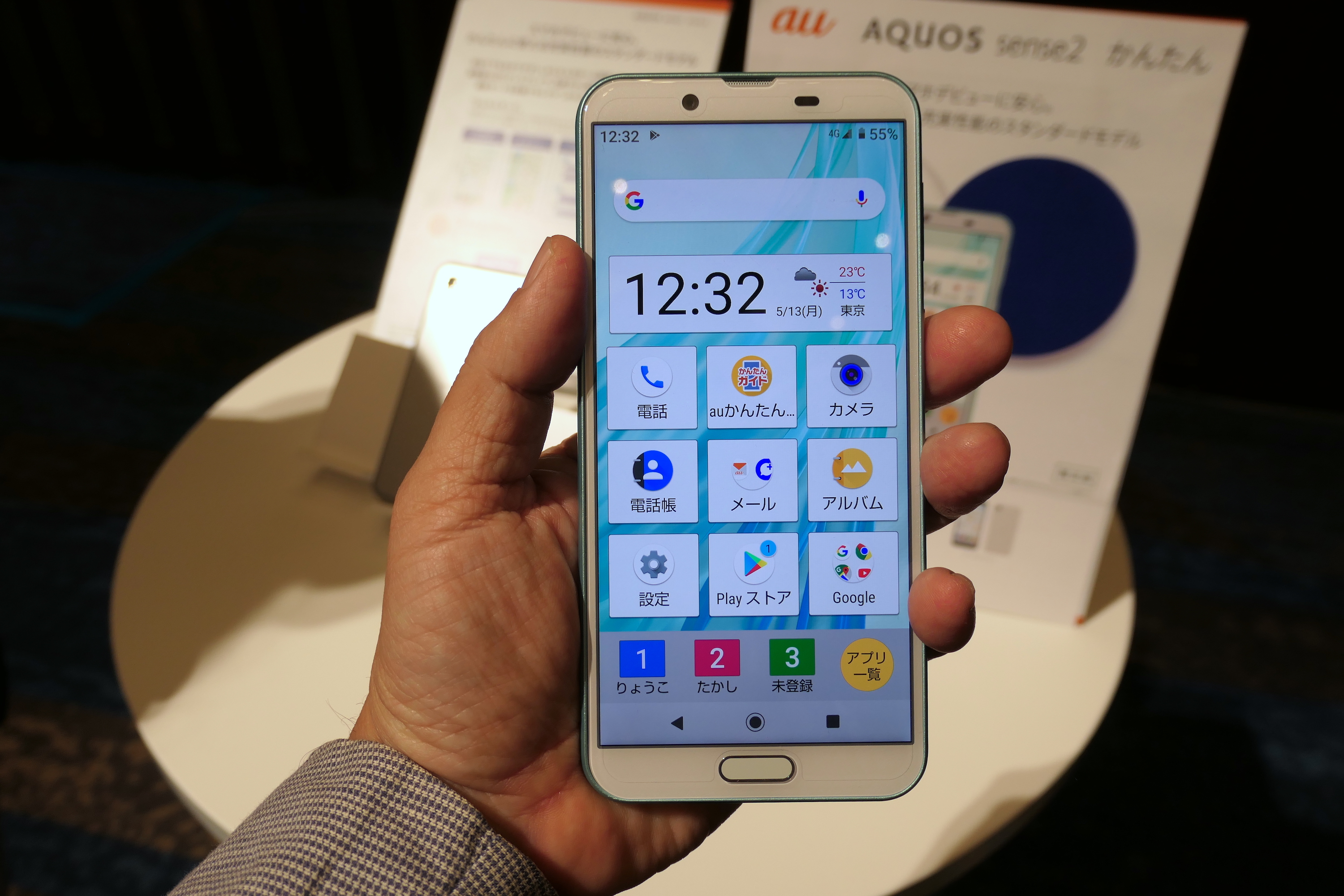 すでに発売されている「AQUOS sense2」に、「AQUOSかんたんホーム」など、スマホを初めて使う人に適した機能をプリセットしたモデルです。「auかんたんガイドブック」(数量限定)も付いています。