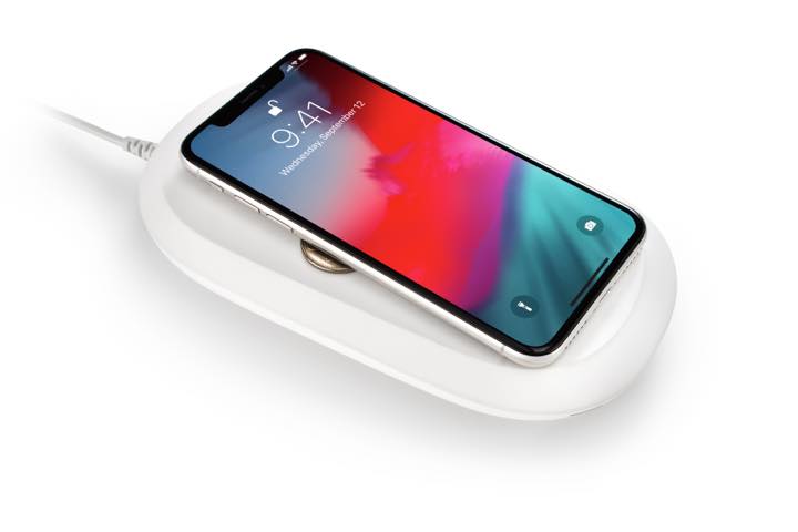 「iXpandワイヤレスチャージャー」は、ポンと置くだけでデータバックアップと充電が同時にできるバッテリーチャージャー。要するにQi対応のワイヤレス充電器にバックアップ用メモリーを搭載しているのですが、なんといってもうれしいのは、スマホを置いたらあとはほったらかしたままでOKという手軽さ。