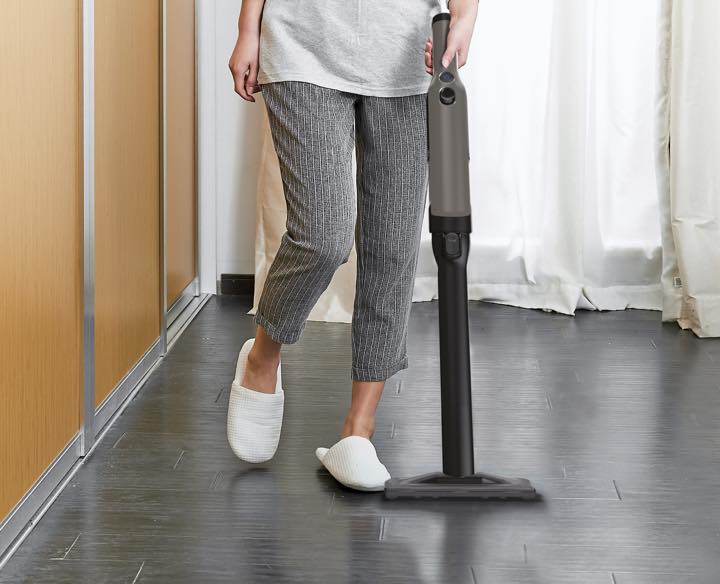 スタイリッシュなフォルムでありながら、吸い取ったゴミを集めるダストボックス(フィルター付きのダストカップ)とモーター、着脱式のバッテリーまでしっかりと備わっています。