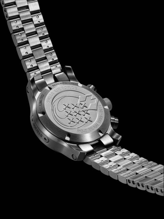 両モデル共通仕様として、時・分針とインデックスに暗所での視認性を高めるスーパールミノバ加工が施され、裏蓋にはPC-7チームのロゴマークがエンボス加工で装飾されます。