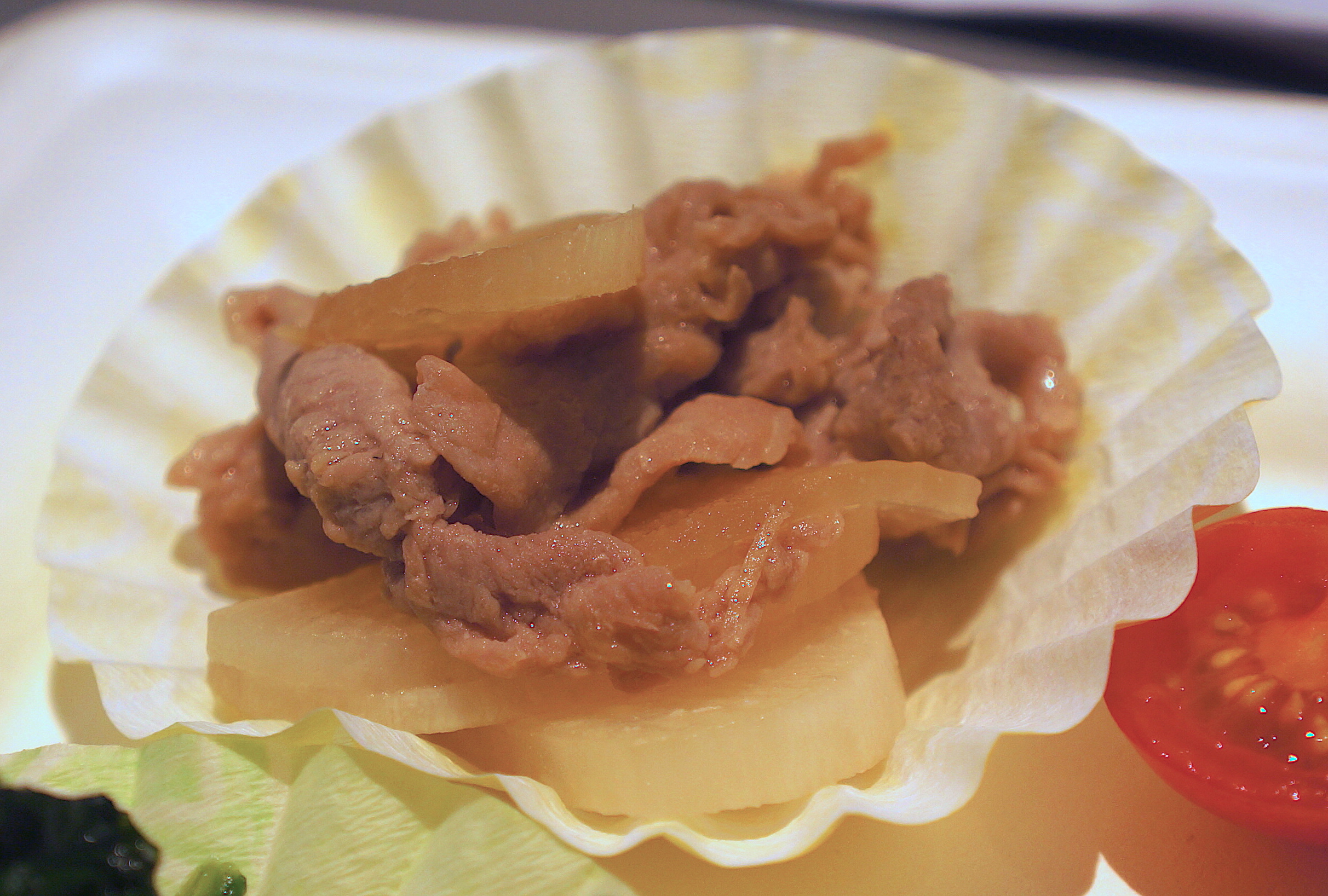 「5分おかず」で作った「豚肉と大根のしょうが風味」は、味がしっかりとしみ込んでいてムラもありません。5分でできたとは思えないほどのクオリティでした。