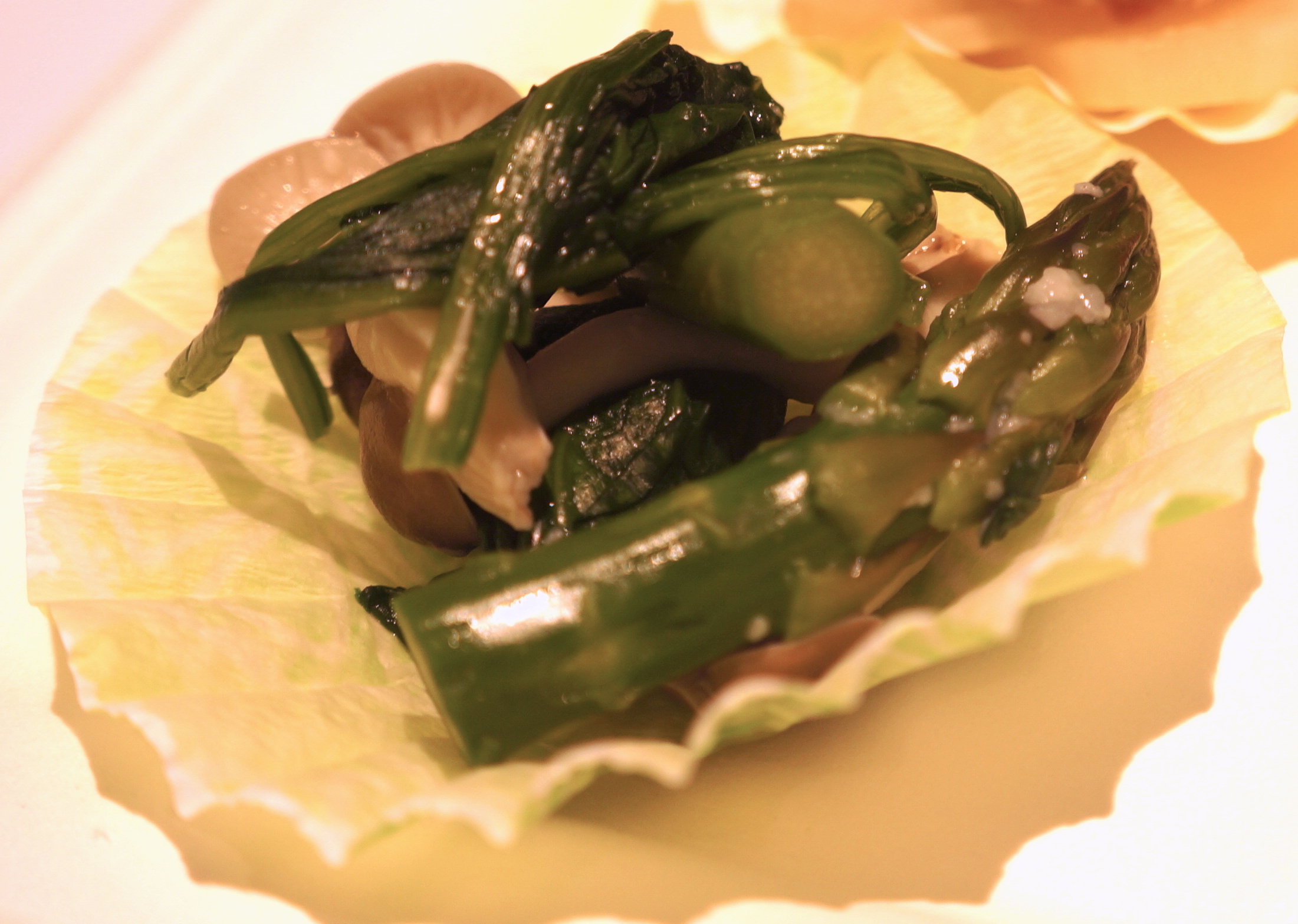 ▲「低温蒸し青野菜」機能で作った「ほうれん草としめじの塩こうじあえ」
