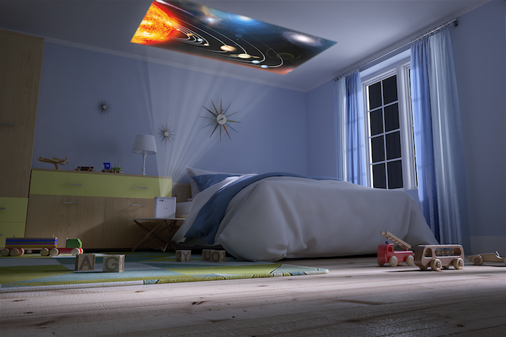 上に向けて置けば天井にも投写できるので、ベッドの上で横になりながらリラックスして映像を楽しめます。寝転びながら映画を見るなんて自宅じゃなきゃできませんよね。