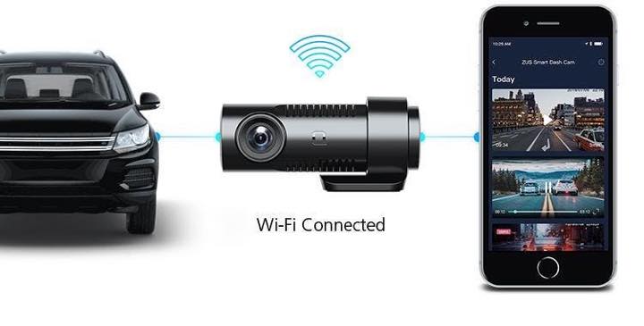 「ZUSスマートダッシュカム」(1万4904円)は、バックミラーの陰に隠れ視界を遮らないコンパクトなボディでありながら、高画質の大型レンズを採用し、1080p(1920×1080)の高解像度と30fpsの高いフレームレートで鮮明なフルHD映像を記録します。