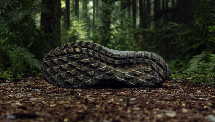 アウトソールには大き目で上端がフラットな突起を付け、水で濡れたり緩んだ路面での走行時でも “足裏で地面をしっかり掴む感” を実現。トレイルからロードへの移行も無理なく行えます。