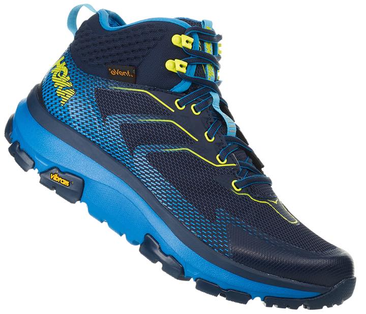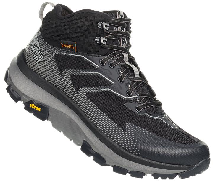 ホカ オネオネのトレイルランニングのノウハウと技術革新が活かされており、耐久性と通気性を備えた合成アッパー、ラバーフォームミッドソール、Vibramメガグリップアウトソールを備え、効率的に軽量化。また透湿防水素材「eVent」を採用し、足を快適に保ち、心地よい履き心地を実現しています。