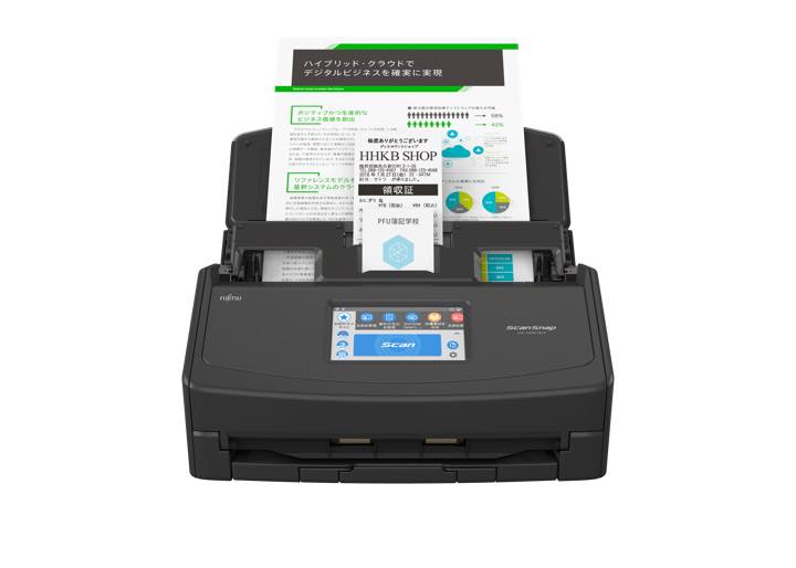 FUJITSUのスキャナー「ScanSnap iX1500」(5万1840円)は、2018年秋に発売されたScanSnapシリーズのフラッグシップモデル。その最大の特長は、さまざまな設定を直感的に操作できる、4.3インチの大型タッチパネル。主要な読み取り設定をはじめとした各種設定を、PC操作なしにスキャナー側で簡単に行うことができます。