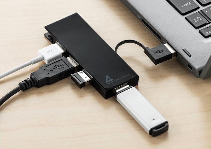 同時に、手のひらに収まるほどのコンパクトさで約20gという軽量&コンパクトなUSB2.0対応4ポートハブ「400-HUB068BK」(907円/税別)も発売中。こちらは常にバッグに入れて持ち歩くのにぴったりです。