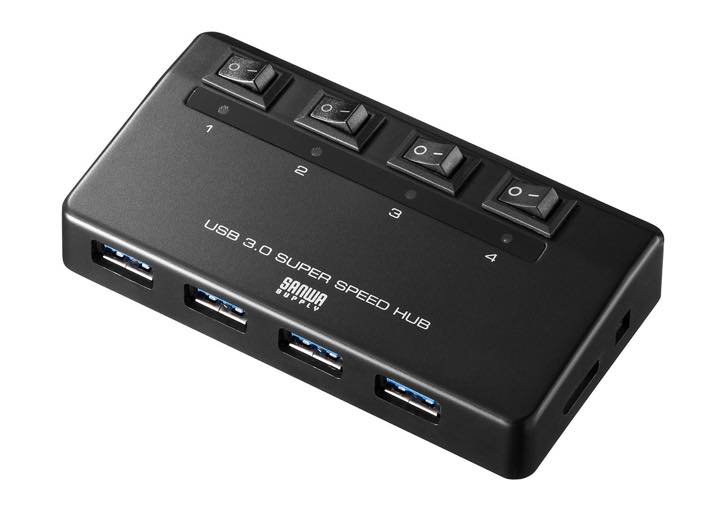 でも、「ハブにつないでるモニター、今は使わないんだよな」ということは多々ありますし、そういった使わない周辺機器をつなげっぱなしにしておくと待機電力が心配ですよね。そこで登場したのが、USB3.1ポートが4つ備わった「USB3.1 4ポートハブ 400-HUB069BK」です。