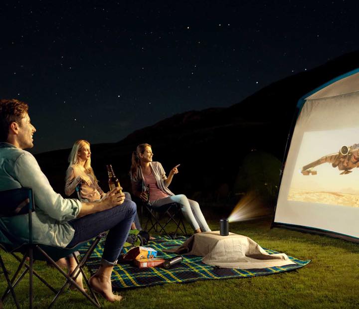 ▲持ち運びに便利なので、キャンプでテントに投影して映画を動画を楽しめる