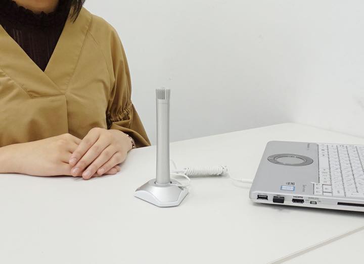 また、マイク本体と台座はマグネット脱着式となっており、マイクを手に持ってしゃべる際や、持ち運び時&保管時に便利。メチルアルコール・次亜塩素酸ナトリウム(1.2%)での消毒が可能なので、医療現場でも使用できます。外寸は高さ150mmで台座部80mm×70mm。ケーブルと台座を含めた総重量は77gとコンパクトなサイズです。