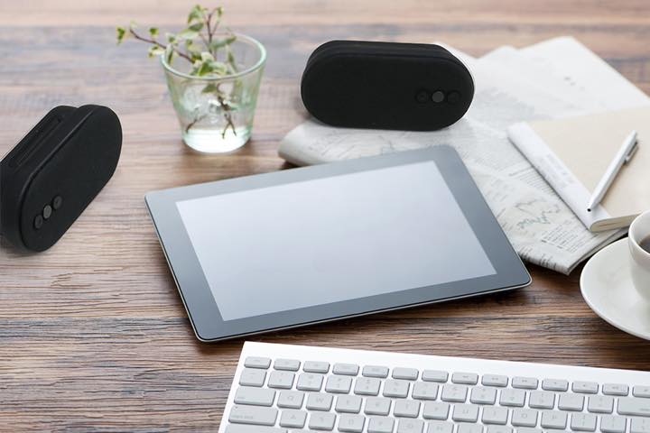 スピーカーは手のひらに収まるミニサイズながら、それぞれに31mm径ユニットと19×16mmの楕円形パッシブラジエーターを1基ずつ搭載。ヘッドホンやイヤホンのように外部音を遮断することがないから、例えば仕事や家事などをこなしながら音楽を楽しみたいけれど、来客や電話の着信は逃したくない、といったシーンにはぴったりのアイテム。