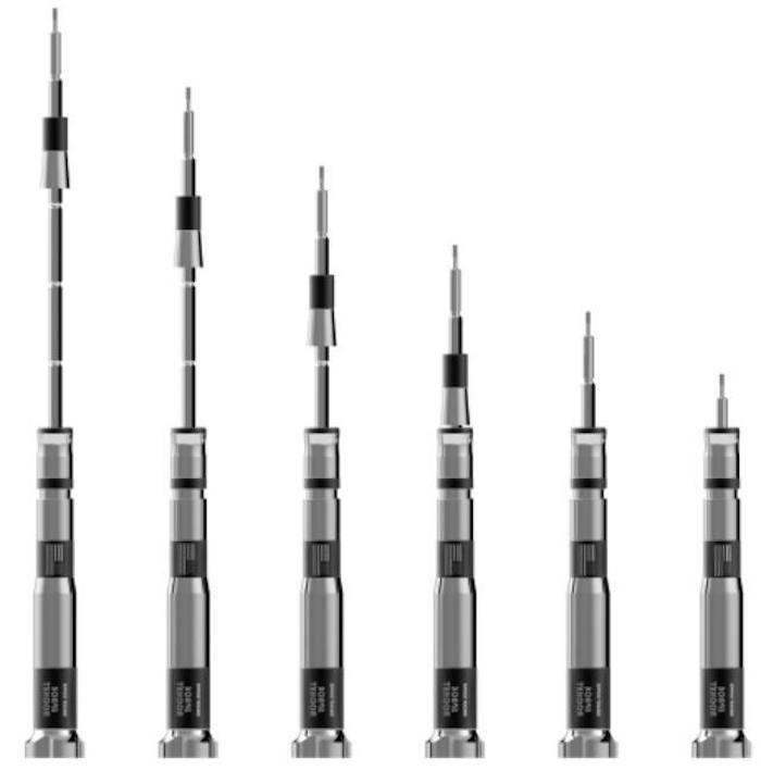 普通のドライバーでは手が届きにくい場所であれば、105〜203mmまで6段階で長さ調整ができるエクステンダーが大活躍。横向きでの作業、狭くて手が入りにくい場所など、扱いが難しい作業もしっかりサポートしてくれます。