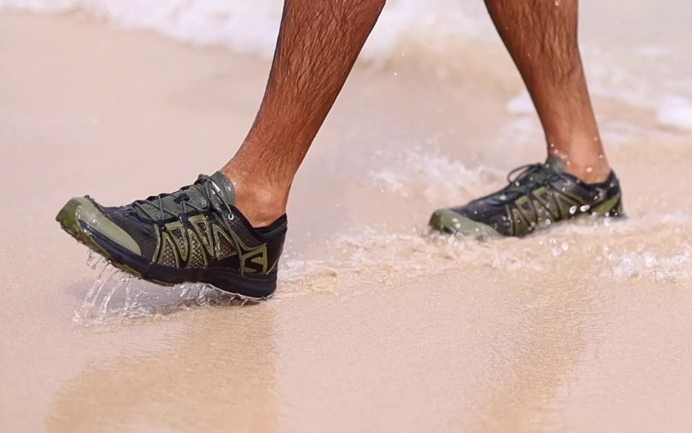 「CROSSAMPHIBIAN SWIFT 2」(8640円)は自然保護の観点で作られたシューズで、素材にはリサイクル資源が使用されています。足首周りにラバーパーツを配し、異物が入り込むのを防いでくれます。