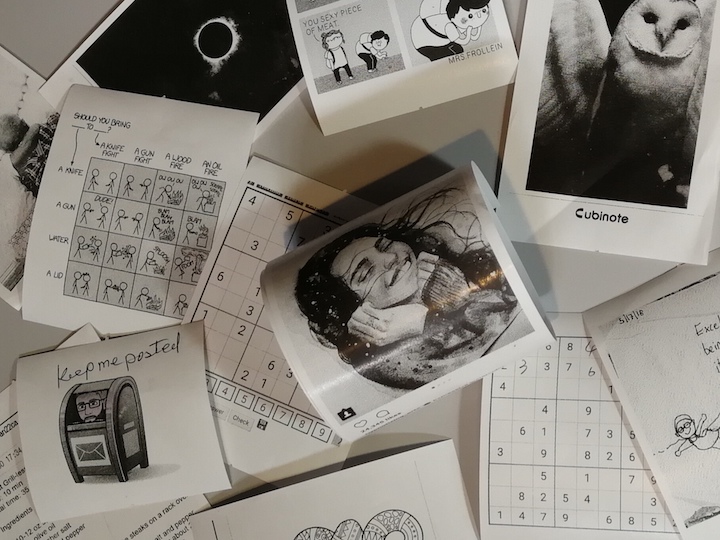 「Cubinote」は、テキストや写真、スマートフォンのキャプチャ画像、QRコードなど、さまざまなデータを印刷できる手のひらサイズのプリンターです。Wi-Fi接続はクラウド経由で、スマートフォンからBluetoothで直接データを転送し、プリントが可能です。