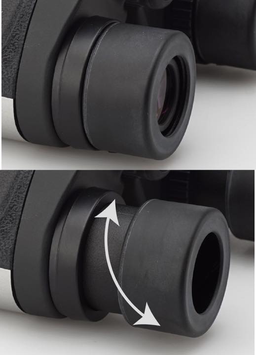 25mm径のレンズには高い光透過率を実現したマルチコート(多層膜コート)を施し、高屈折率の「Bak4プリズム」採用で、明るくクリア、シャープな視界を確保しています。アイレリーフ(眼の位置から接眼レンズまでの距離)は15mmで、眼鏡を掛けたままでも双眼鏡からの視界を快適に見ることが可能です。見口(見当て)がツイストアップ式となっており、眼と双眼鏡間の位置バランスを調節できます。